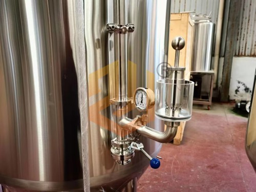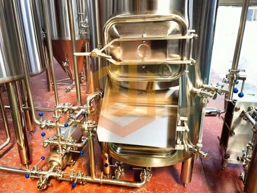 精釀啤酒設備使用的過濾槽與旋沉罐:采用上下兩層的設計方式,整體占地面積小,過濾槽采用銑制篩板,頂部采用異型人孔設計,側面配有出糟口,方形人孔門設計更有利于啤酒麥糟的清理工作,同時還配有出糟板。內(nèi)部配有耕刀裝置,用于疏松麥糟層以及出糟使用。